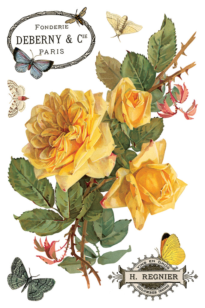 Using the illustrations of Paul De Longpré, the By Any Other Name – 8-Page 8x12" Transfer Pad features a classic collection of roses paired with birds and butterflies. Sally sourced the antique prints directly from a dealer, selecting from a book of De Longpré’s rose studies. A contemporary of Katarina Klein, his work was often compared to hers for its expressive handling of botanicals, though each artist had a distinct approach. We curated a selection of prints that preserved the character and detail of his original compositions.